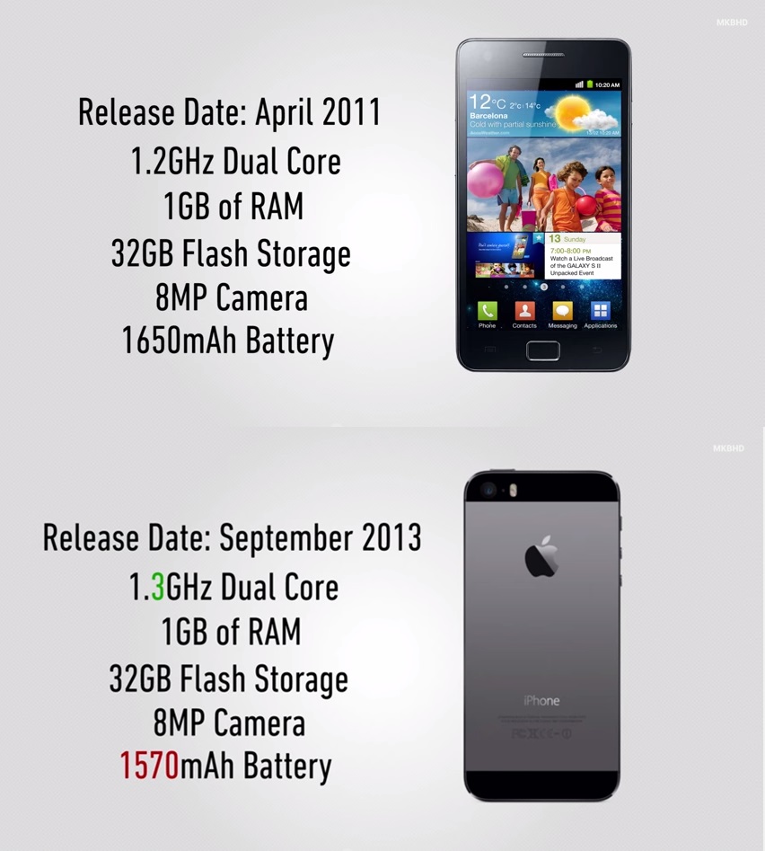 Sebaliknya, smartphone menampilkan reka bentuk moden dengan skrin sentuh penuh, kadangkala melengkung atau tanpa bingkai, dengan saiz skrin antara 5 hingga 7 inci. Mereka juga dibina dengan bahan berkualiti tinggi seperti kaca dan logam, serta mempunyai senibina yang menekankan estetika dan keselesaan pengguna. Perkembangan seperti skrin OLED dan kadar kemas kini tinggi juga menambah nilai pengalaman visual pengguna.